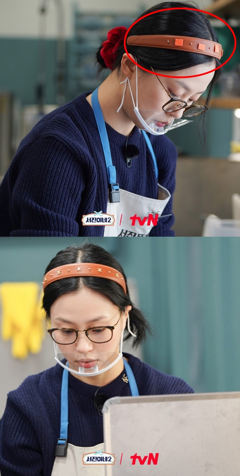 고민시 머리띠는 로고를 스티커로 가렸으나 처음 부분에 그대로 나왔어요.