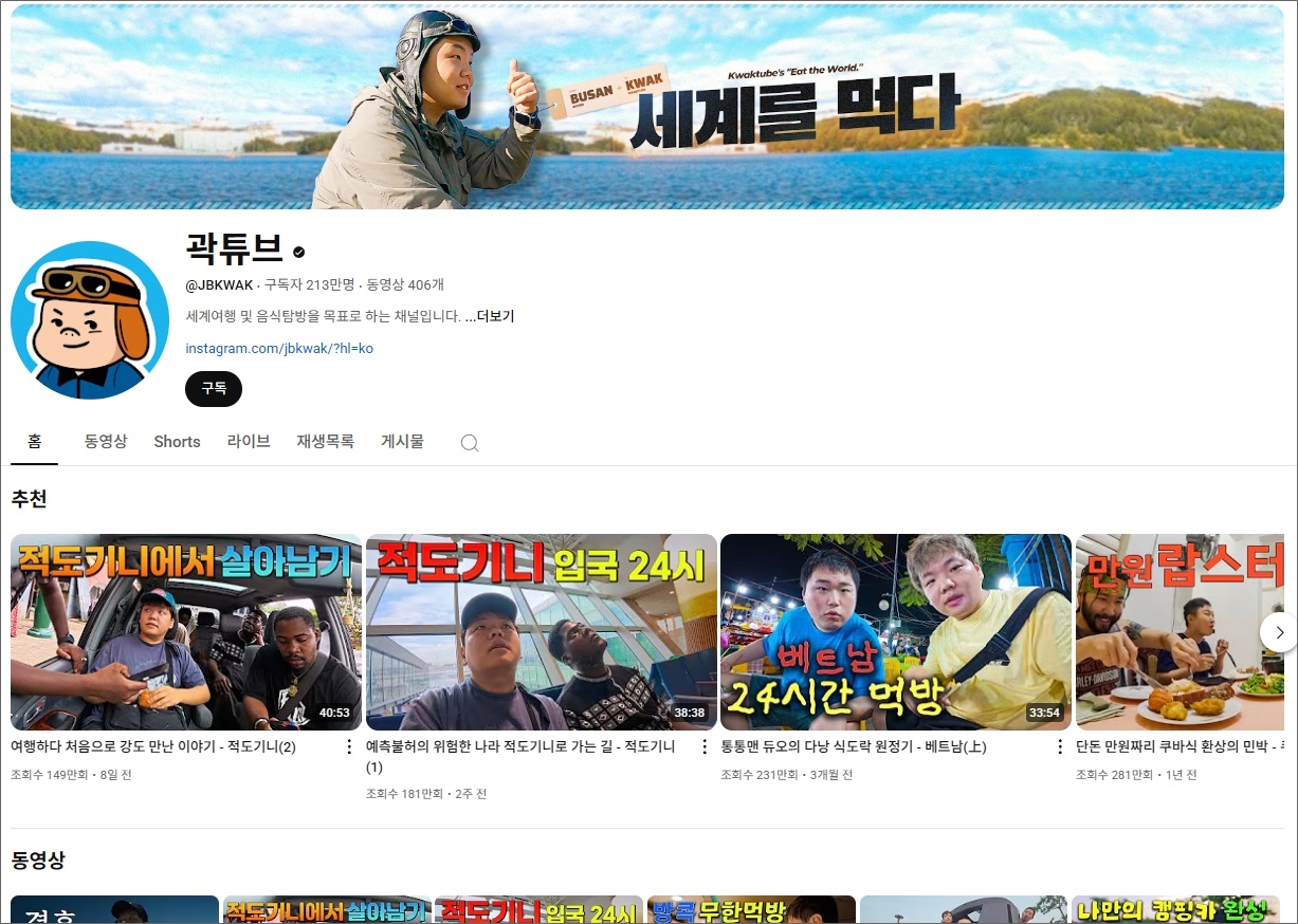 그리고 아제르바이잔에서 제일 유명한 유튜버가 되는 것을 목표로 영상을 제작했던 곽튜브. 빠니보틀 영상에 출연하며 구독자가 폭등했고 현재 유명 유튜버의 자리까지 올랐습니다.