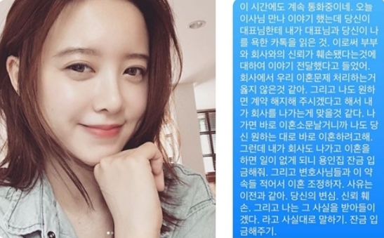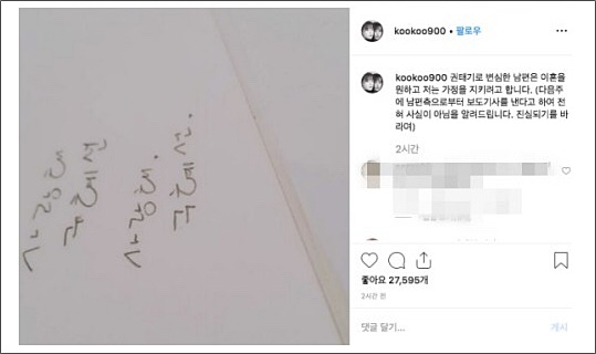 남편 안재현이 권태기로 변심을 했으며 이혼을 원하고 있고 자신은 가정을 지키려 한다며 불화를 겪고 있다는 것을 밝혔습니다.
