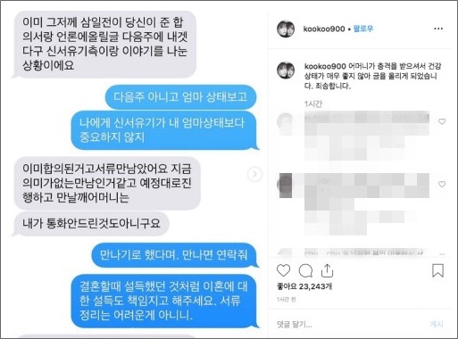그러다 결혼한 지 3년 지난 2019년 8월, 구혜선 자신의 SNS를 통해 처음 이혼을 언급했었는데요.