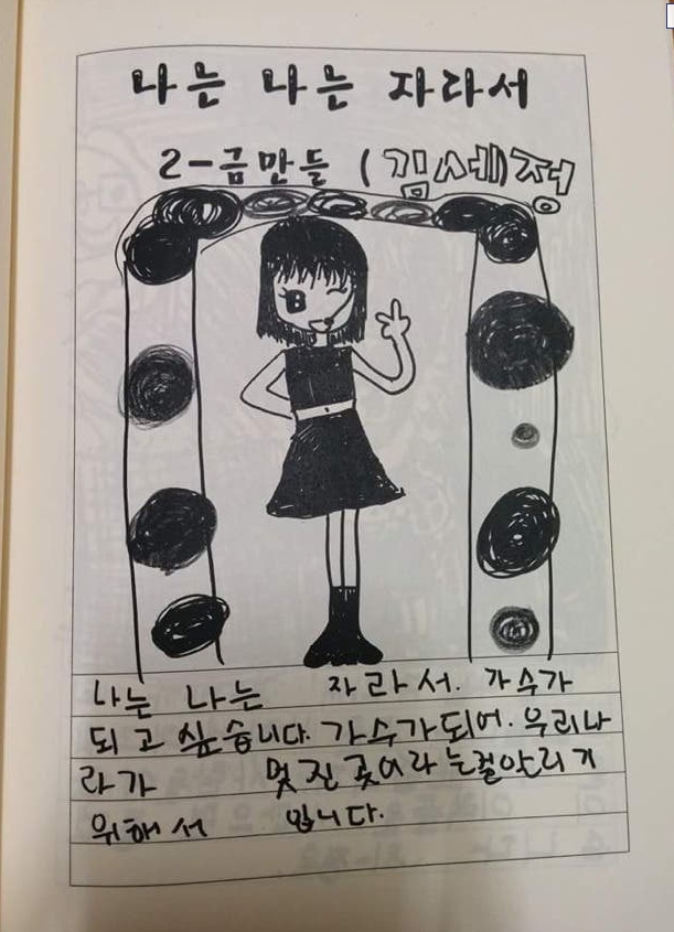 김세정 어릴 때부터 꿈이 가수로 만경초등학교 재학 시절 장래 희망을 가수라고 쓴 문집이 한 커뮤니티에 올라오며 화제가 되기도 했는데요. 김세정 가수 데뷔 전까지 각종 오디션 프로그램에 적극적으로 참여를 했던 이력이 있습니다.