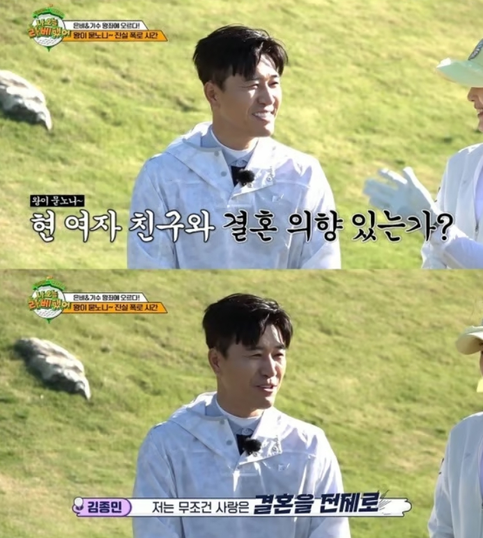 김종민 여자친구가 자신에게 반한 이유에 대해 방송할 때는 망가지게 나오는데 생각보다 실물이 괜찮다고 하더라며 밝혔습니다.