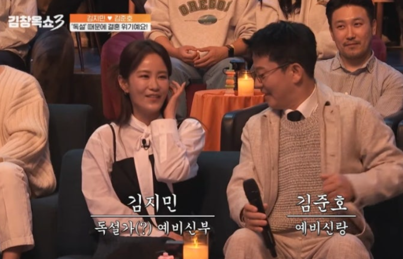 김준호 힘들 때 김지민이 옆에 있었다며 어느 날 김준호 맨날 농담으로만 하던 '만나보자. 사귀자'라고 김지민에게 반 진지하게 말했고 김지민이 '그래 만나보든가'라고 고백하며 만나게 되었다고 합니다.