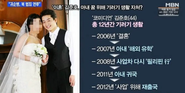 김준호 전 부인 김은영 아이 낳기 전에 해외 유학 가보는 게 소원이라 하여 김준호 전 부인 김은영을 결혼한 지 얼마 안 된 2007년 1년간 필리핀 유학을 보내줬고,
