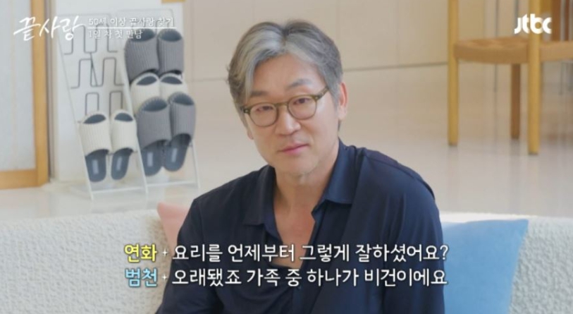 이범천은 1970년생 올해 나이 55세로, 키 189cm의 큰 키에 훈훈한 외모, 분위기 있는 목소리, 뛰어난 요리 실력과 다정함에 유머 감각까지 다양한 매력을 가진 남성 출연자입니다.
