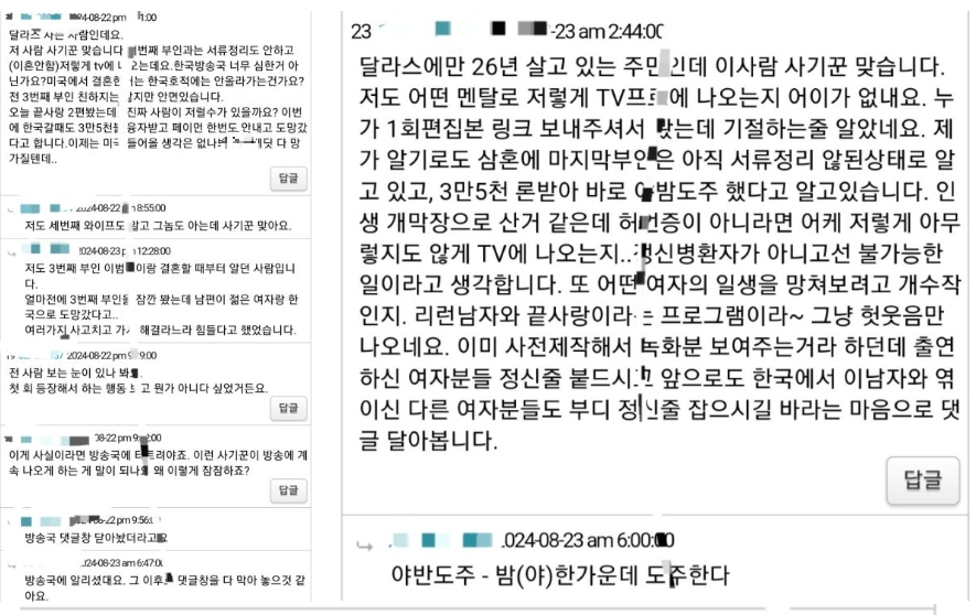 사실 처음 폭로 글이 올라와 기사화됐을 때 끝사랑 제작진 팀도 이범천도 크게 대응을 하지 않길래 끝사랑 프로그램에 많은 관심이 쏟아지다 보니 일시적으로 관심을 끌고 싶은 누리꾼에 의해 만들어진 이야기라고 생각했었습니다.