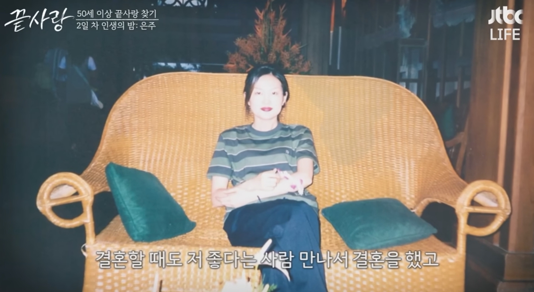 끝사랑 정은주 본인에 대해 어렸을 때부터 수동적이고 소극적으로 살아왔다고 밝히며, 결혼도 본인 좋다고 하는 사람과 결혼했고, 결혼하면서 다니던 회사도 바로 그만뒀다고 합니다.