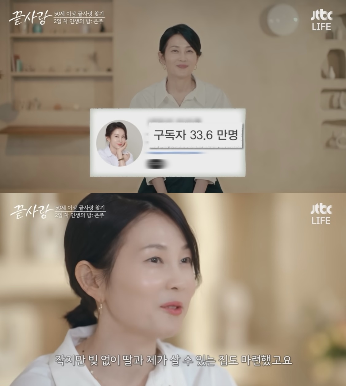 끝사랑 정은주 구독자가 10만만 되면 딸 아이와 생계는 책임질 수 있겠다 생각 했었는데, 열심히 하다 보니 구독자 33만 명이 넘었고 이제는 빚 없이 딸과 함께 살 집도 마련했다며 지금이 인생의 최고의 순간이라고 소개했습니다.