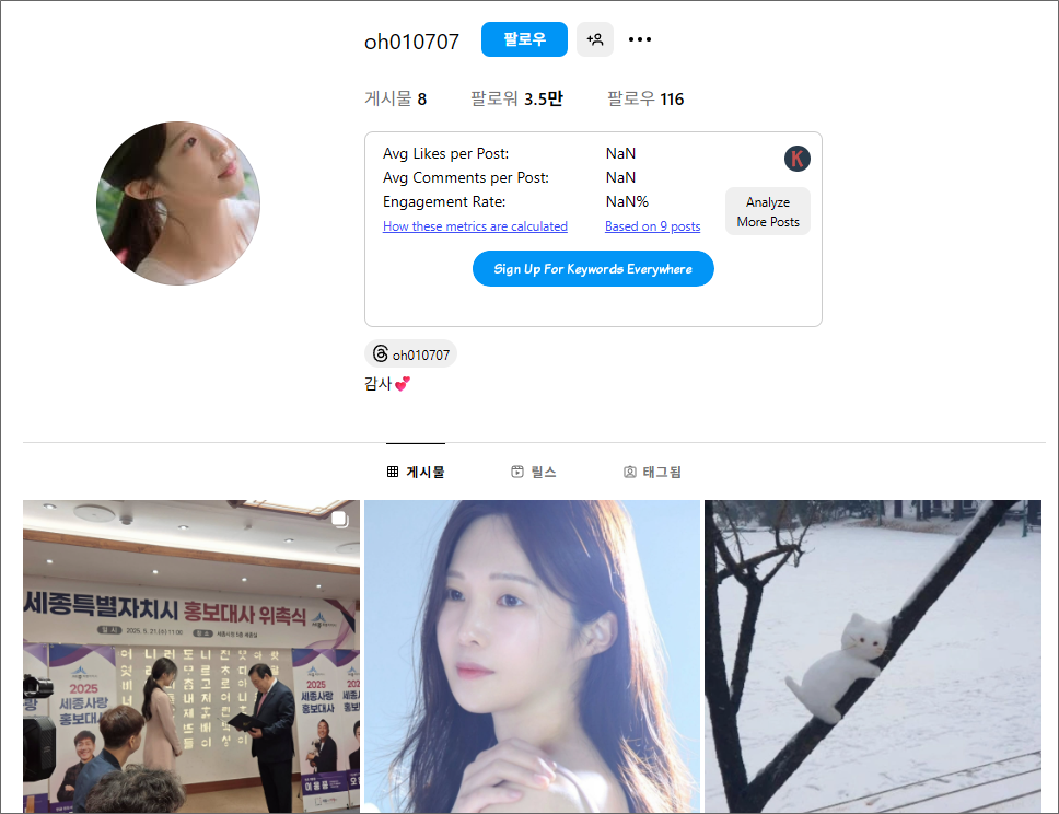 나는 솔로 17기 옥순 인스타를 보니 최근에는 세종시 홍보대사로 위촉되기도 했던데 앞으로 활발한 횡보 기대하겠습니다.