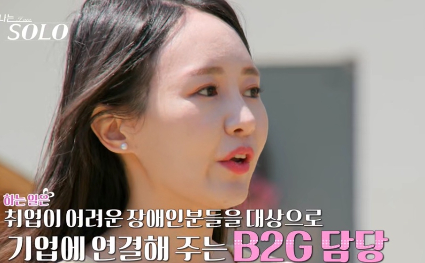 나는 솔로 27기 순자 직업은 취업을 원하는 장애인과 기업을 연결하는 B2G 담당 업무를 하고 있다고 합니다.