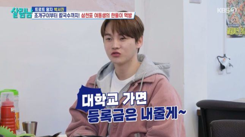 박서진은 동생을 위해 학원에 등록시켜 줬으며, 검정고시 합격 후 대학교에 가면 등록금을 내주겠다고 약속했었는데 아쉽게도 검정고시에 낙방했는데요.