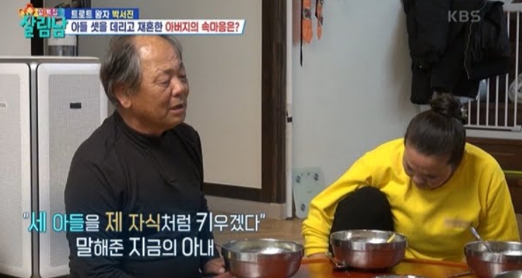 박서진 아버지는 이혼 후 7년을 혼자 살았고, 아들 셋을 혼자 키우다 선을 봤는데 다들 자기 자식만 키우려고 하고 내 자식은 버리려고 했는데 마지막으로 선본 박서진 어머니가 내 자식을 자기 자식처럼 키워준다고 해서 빠져들었고 재혼하셨다고 합니다.