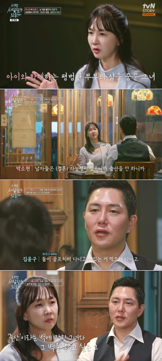 출산에 대한 걱정으로 결혼에 쉽게 다가가지 못하는 박소현에게 자녀 문제로 얽매이지 않길 바란다며 자녀 없이 행복하게 사는 사례를 언급한 맞선남 김윤구에 박소현 다시금 감동을 받은 모습이었습니다.