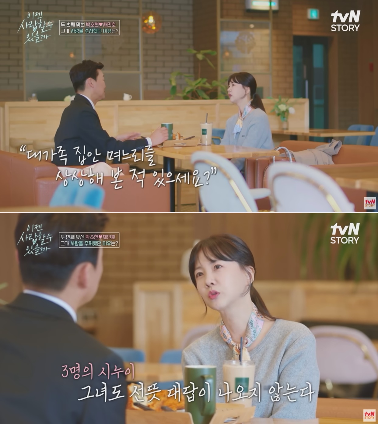 박소현 맞선남 채민호 과거 대가족이라는 조건이 결별 이유 중 하나였다며 결혼 생각을 못 한 이유 중 하나였다고 밝히며 조심스레 질문을 이어 나갔습니다.