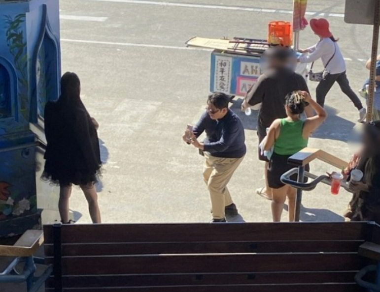공개된 사진에는 파파라치 영상 속에서 두 여성과 길을 걷고 있던 방시혁 의장이 입었던 옷과 똑같은 옷을 입고 있는 방시혁으로 보이는 남성이 과즙세연으로 추정되는 여성에 몸을 굽혀가며 적극적으로 사진 촬영을 해주는 모습이었는데요.