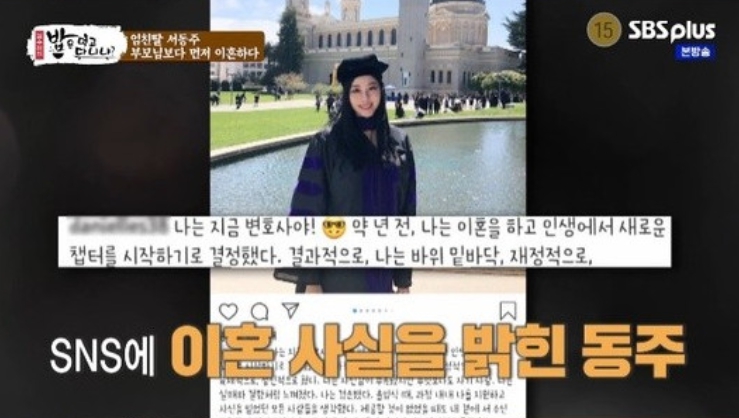 그러나 서동주 결혼한 지 5년 만인 2014년 이혼을 했는데요. 이혼 이유에 대해서는 행복하지 않았고 자신을 잘 몰라기 때문이라고 밝혔습니다.