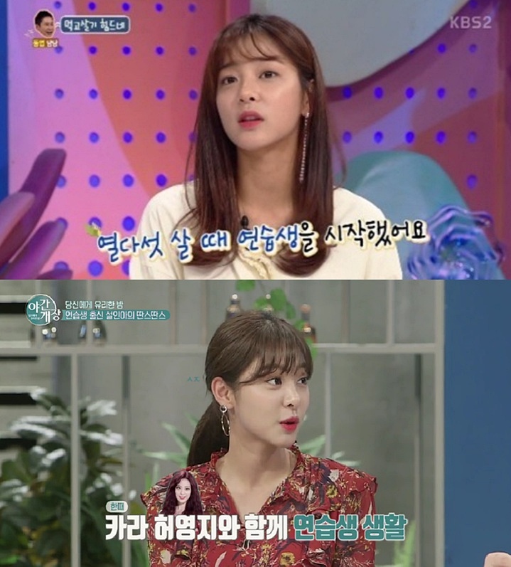 설인아 중학교 2학년 때 위엔터테인먼트에 아이돌 연습생으로 들어가 가수로 데뷔할 뻔했었다고 합니다. 같이 연습했던 연습생 중 카라 허영지와 배우 민도희가 있었다고.