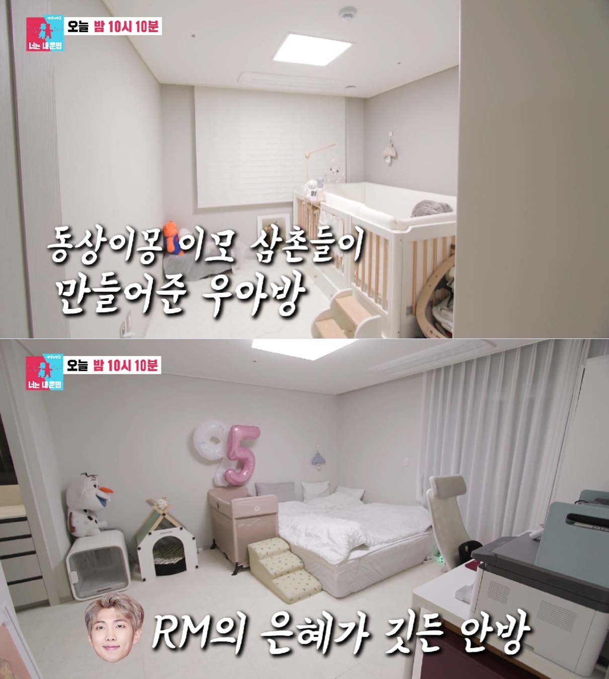 슬리피는 김구라, 서장훈, 이현이 동상이몽 이모 삼촌들이 첫째 우아 방을 만들어 주었으며, 안방은 방탄소년단 RM의 은혜가 깃든 방이라며 소개를 했는데요.