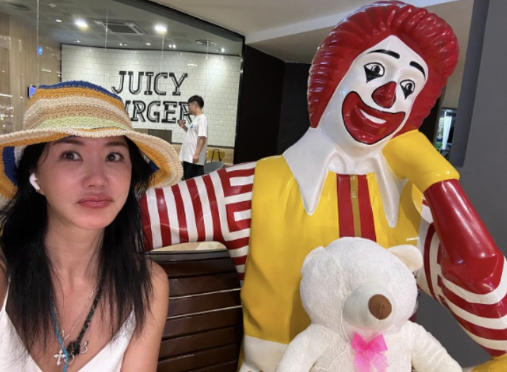 엄정화 과거 "남자 친구가 생겼어요"라고 기사가 올라와 진짜로 남자 친구가 생긴 줄 알았던 적이 있는데 패스트푸드점 인형 옆에 앉아 사진을 찍고 농담했던 것.