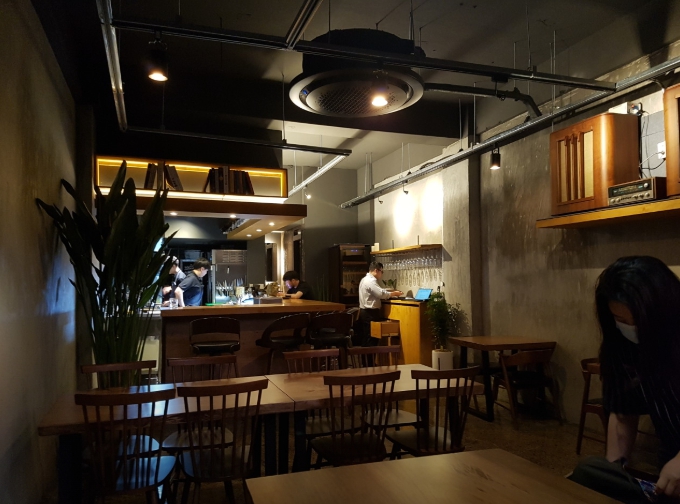 윤남노 셰프는 주로 디핀 신당에 있다고 하는데요. 요리하는 돌아이 윤남노 식당 디핀 신당점은 옥수점과는 다른 메뉴로 운영 중입니다. 디핀 신당점은 다이닝바로 와인과 어울어지는 메뉴로 구성되어 있습니다.