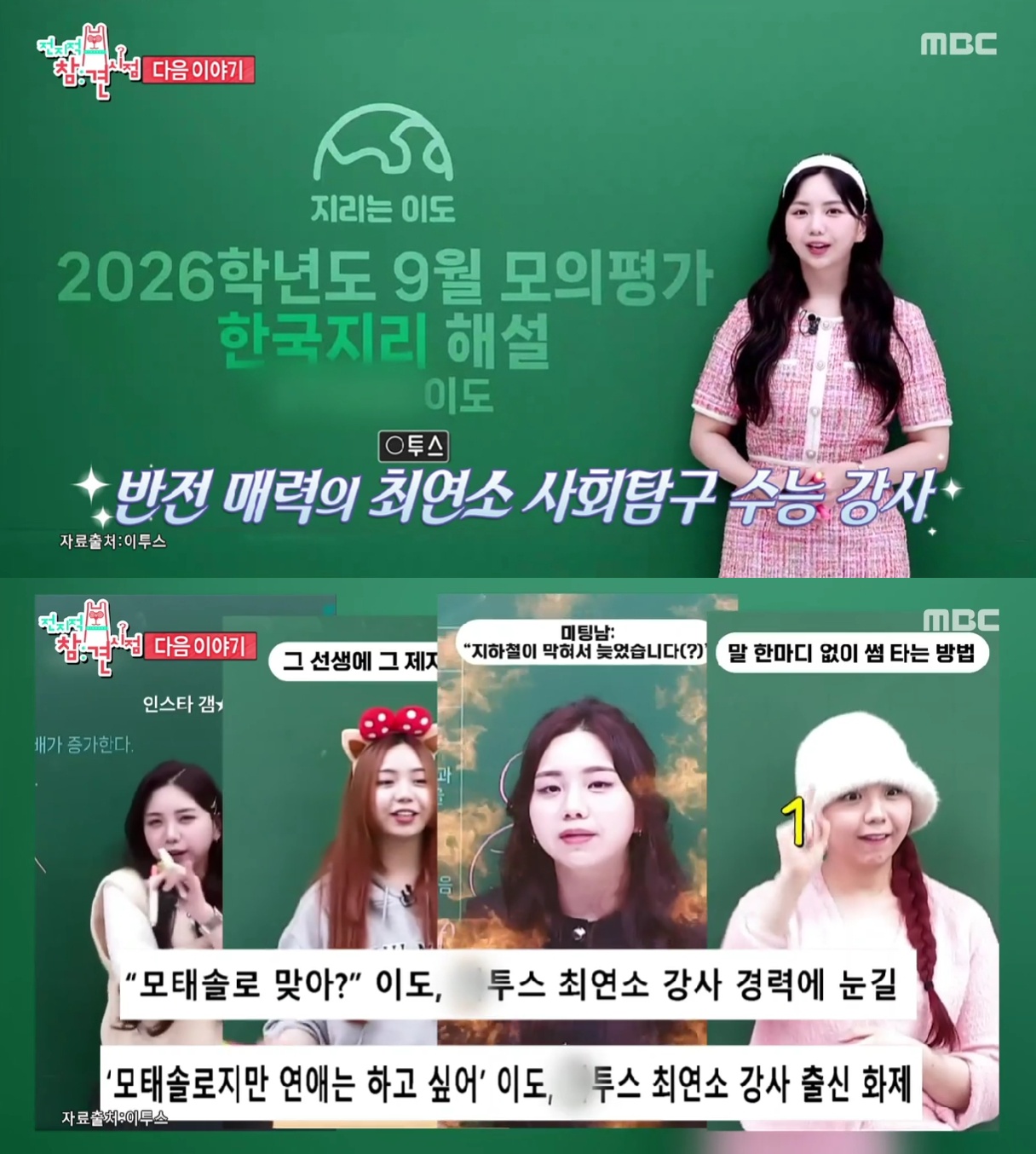 이도 전참시에 보니 강의 준비도 열심히 하고 무엇보다 지리에 대한 사랑이 남다른 것이 이도를 스타 강사로 만들어준 원동력이 아니었을까 생각했습니다.
