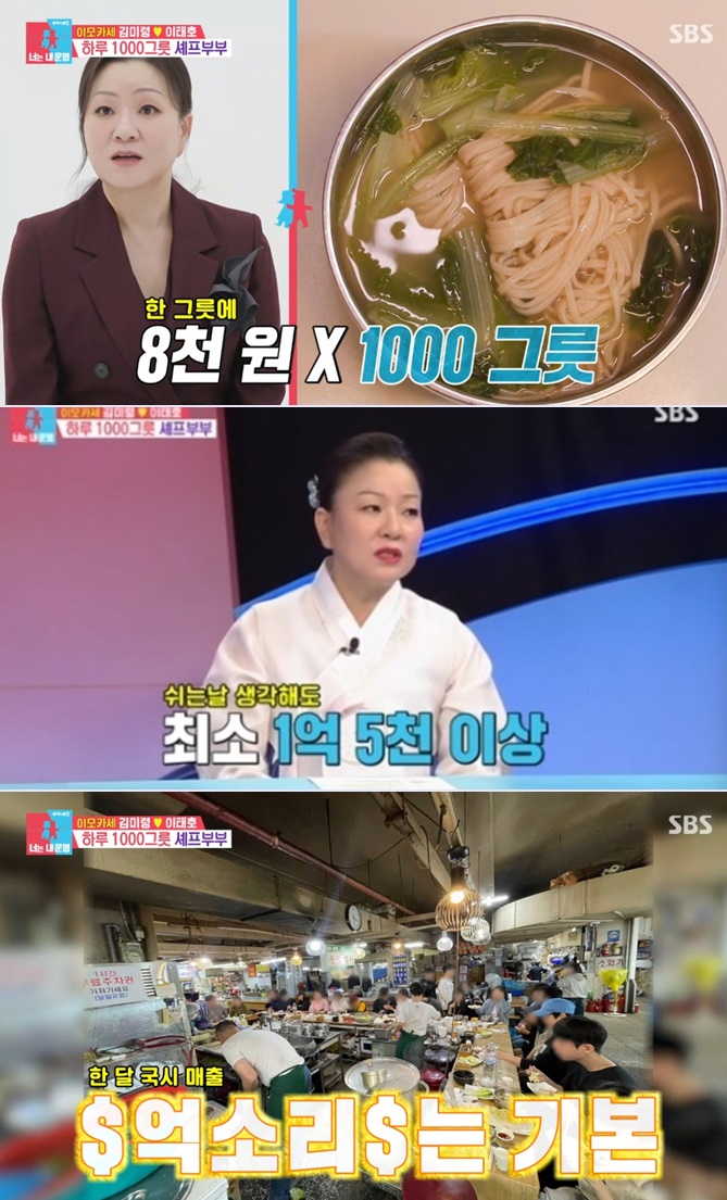 이모카세 김미령 식당 안동집 손칼국시는 2016년 서민 갑부에도 출연했던 맛집으로 국수 한 그릇에 8,000원인데 하루 평균 1,000그릇 정도 팔아 국시로만 하루 국시 매출만 8백 만원, 한달 국시 매출은 억이 가뿐히 넘는 식당이라고 합니다.