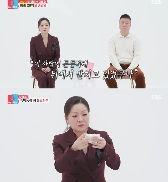 이모카세 김미령 남편 이태호가 느려서 답답한 면도 있고 왜 제대로 못하지라는 생각을 많이 했었는데, 요즘에는 남편 이태호가 뒤에서 든든하게 받치고 있었구나 생각된다며 자신의 빈자리를 채워주고 항상 곁을 지켜준 고마운 남편이라고 소개했습니다.