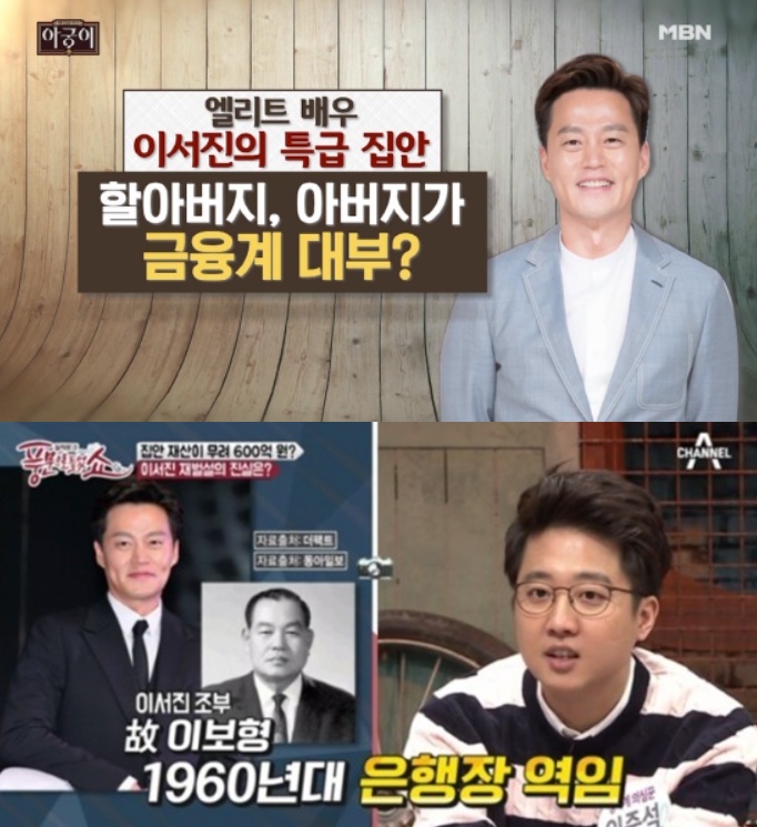 이서진 할아버지는 경성법학전문대학을 졸업 뒤 서울은행장, 제일 은행장을 지낸 이보형이며, 아버지는 안흥상호신용금고 이사장을 지낸 금융인 이재응인데요.