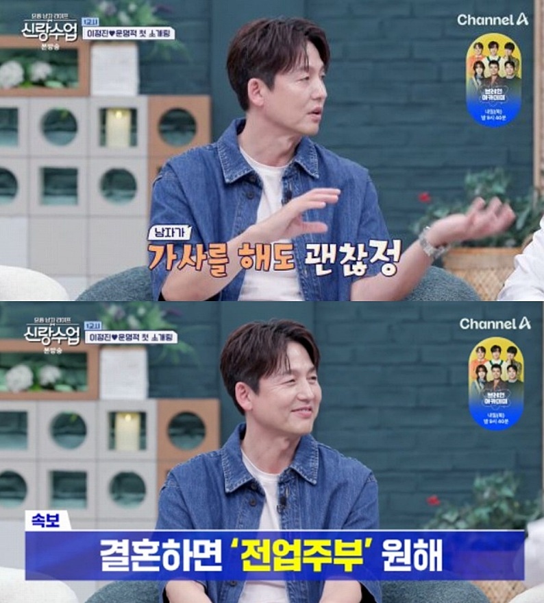 이에 이정진 과거에는 결혼하면 아내가 가정에 충실했으면 좋겠다고 이야기 했었는데, 박해리와 대화 후 능력이 있는 사람이 경제 활동을 하고 남자가 가사를 담당해도 된다며 결혼 후 일하는 여성에 대한 호의적인 마음을 표현했습니다.