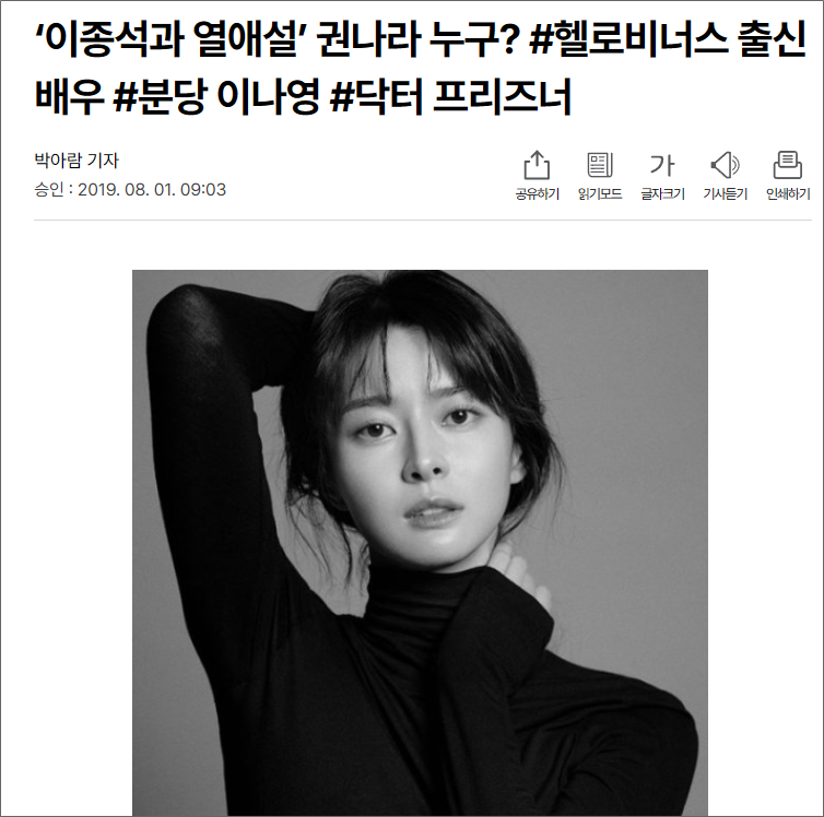 평소 이종석 이나영이 이상형이라고 했었는데 권나라 분당 이나영이라 불렸고, 소속사를 이종석 소속사로 옮기며 열애설을 의심받았던 것인데 두 사람 친한 선후배 사이라며 선을 그었었습니다.