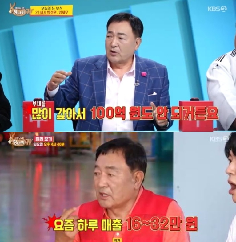 임채무 두리랜드는 1989년에 40억 빚을 지고 운영을 시작해 3년 전 리모델링을 하며 190억이 되었고, 한 달 이자만 8천 만원에 전기료만 3천만 원으로 고정 비용이 약 1억 2천만 원인데, 하루 매출이 16만 원~32만 원밖에 되지 않는다며 운영에 어려움이 있다고 토로 했습니다.