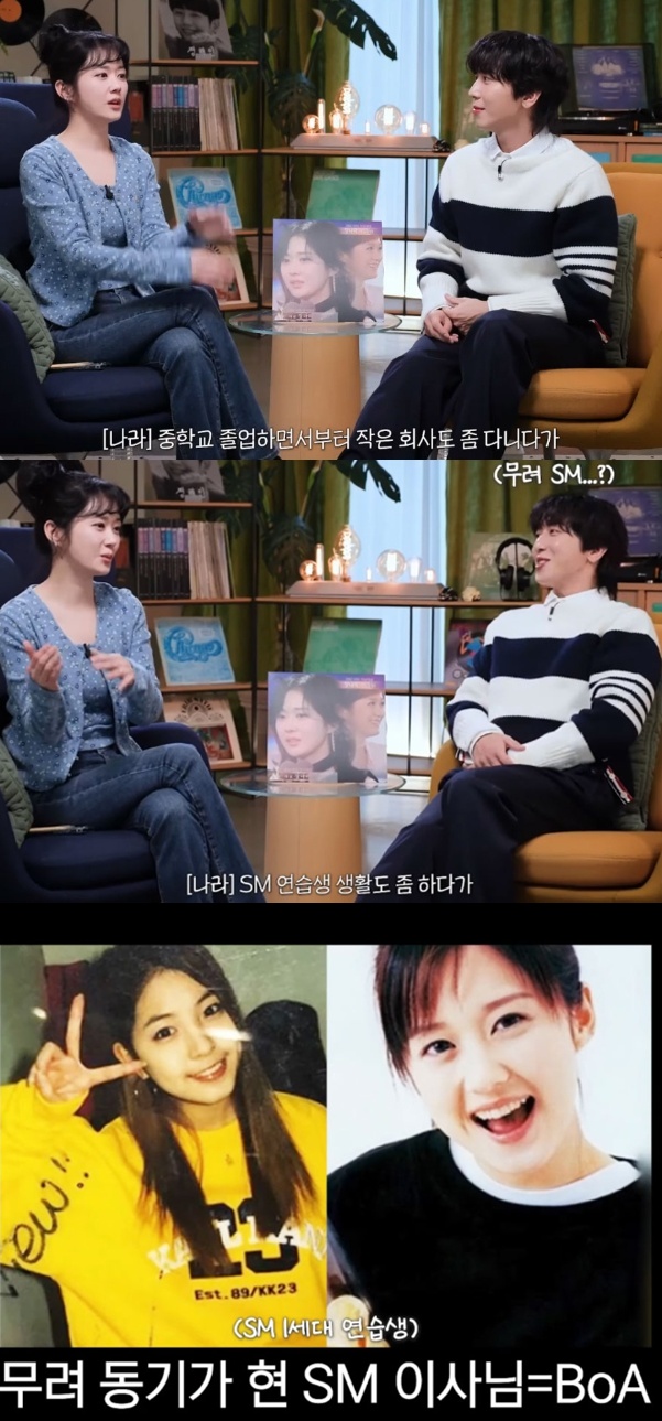 장나라 원래 SM엔터테인먼트 연습생으로 플라이투더스카이, 보아와 함께 연습생 생활을 했었고 걸그룹으로 데뷔를 할 예정이었다고. 그런데 당시 SM 자금 사정이 좋지 않아 SM 지분을 갖고 있는 자회사 원업에서 솔로 가수로 데뷔를 했고 당시 같은 소속사에 속해있던 박명수는 소속사보다는 장나라 스스로의 힘으로 모든 걸 일궜다고 표현하기도 했습니다.