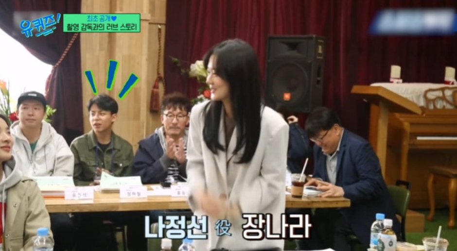 두 사람 촬영장에서 개인적인 대화가 없었고, 촬영하다가 잠깐 옆에 앉게 된 적이 있는데 먼저 관심있던 장나라가 손에 곰 젤리가 있어서 '드실래요?' 했는데 남편 정하철 씨가 세 개를 다 가져갔고 그게 장나라는 나름 플러팅이었기 때문에 혼자 나쁘지 않은데?라고 생각했다고 합니다.