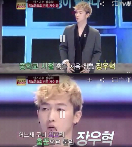 그런데 오디션 합격 후에도 부모님의 반대가 심해서 HOT 멤버가 되지 못할 뻔했다고. 장우혁의 끼를 알아본 담임선생님의 설득 끝에 선생님과 부모님이 동행한 가운데 SM 대표 이수만이 직접 구미까지 내려와 계약했었다고 하네요.