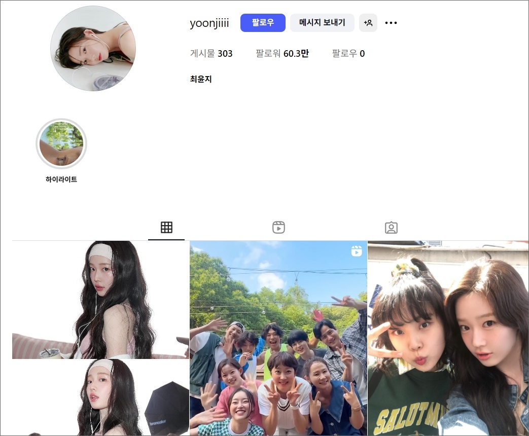 최윤지 배우 공식 계정은 따로 없으며 활동하는 것은 인스타그램이 유일하여 최윤지의 근황 소식이나 횡보가 궁금하다면 인스타그램을 참고하시기를 바랍니다.