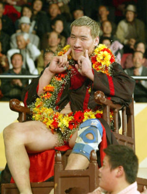 최홍만 프로 씨름 데뷔했던 해인 2003년 4월 진안 장사 씨름대회에서 백두장사, 같은 해 12월 제41대 천하장사에 올랐으며, 이후에도 2번의 백두장사가 되며 2년 만에 세 번의 백두장사에 올랐었습니다.